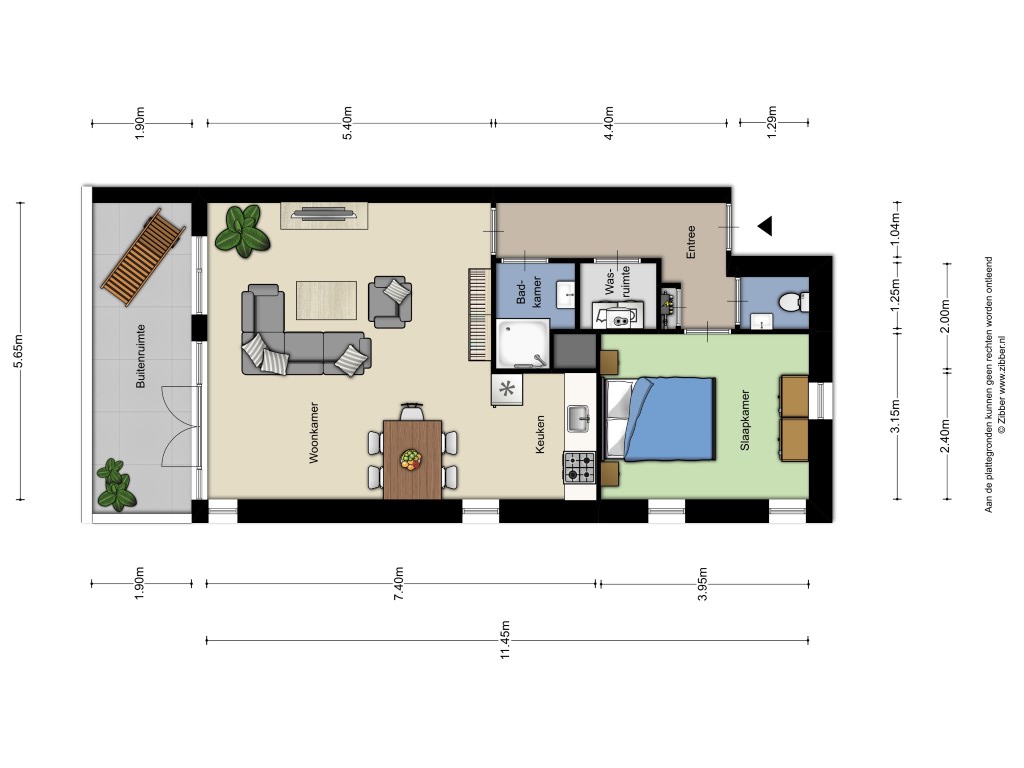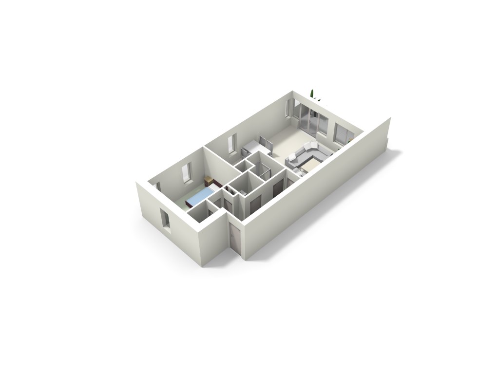 Through the hall you can reach the bedroom which offers enough space for a 2-persons bed and a large wardrobe. Bathroom with shower and sink.
