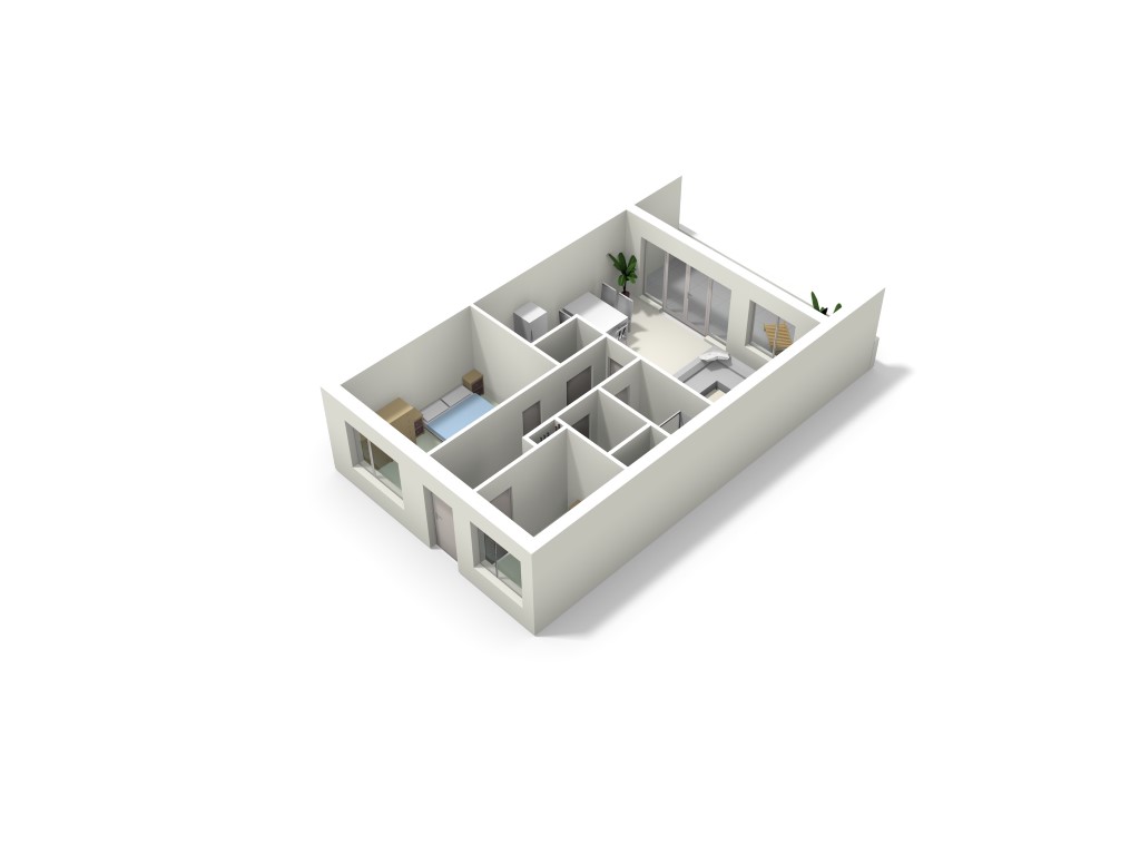 Through the hall you reach the first bedroom which offers sufficient space for a 2-persons bed and a large wardrobe. Second bedroom. Bathroom with shower and sink.