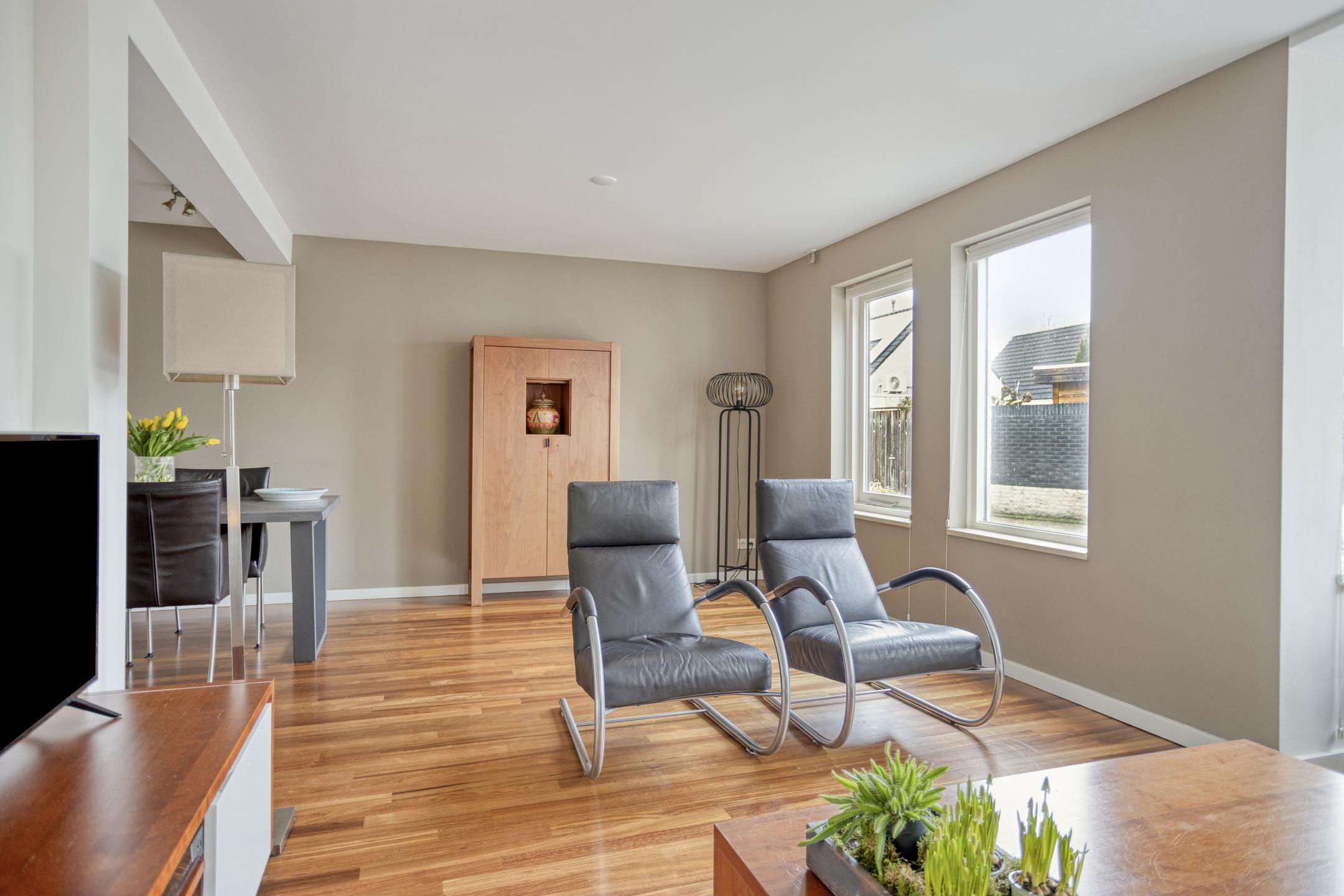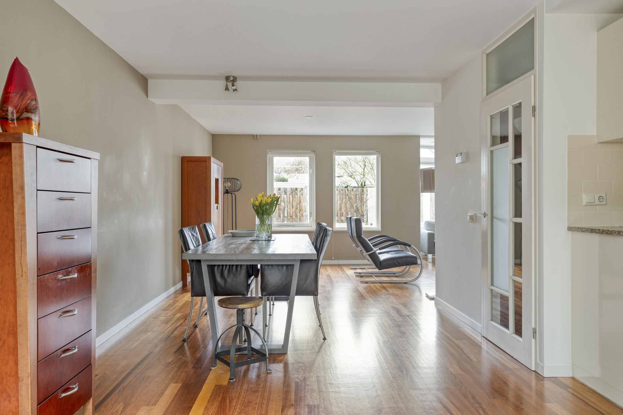 Built in 1987, the house has a living area of approximately 166 m² and is situated on a plot of 277 m² . The backyard faces southeast and includes a rear entrance. With an energy label A, solar panels, and air conditioning, the home is also energy-efficient and comfortable.