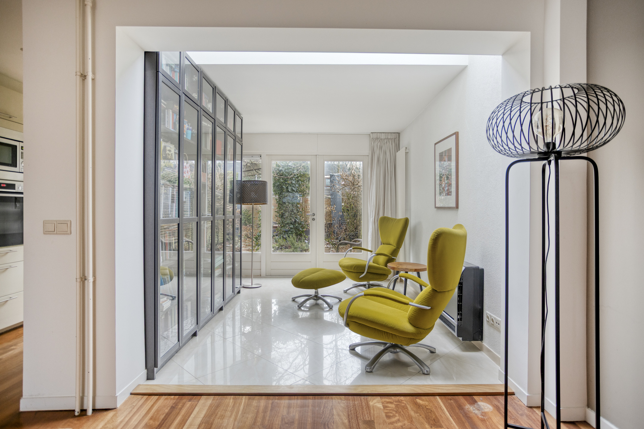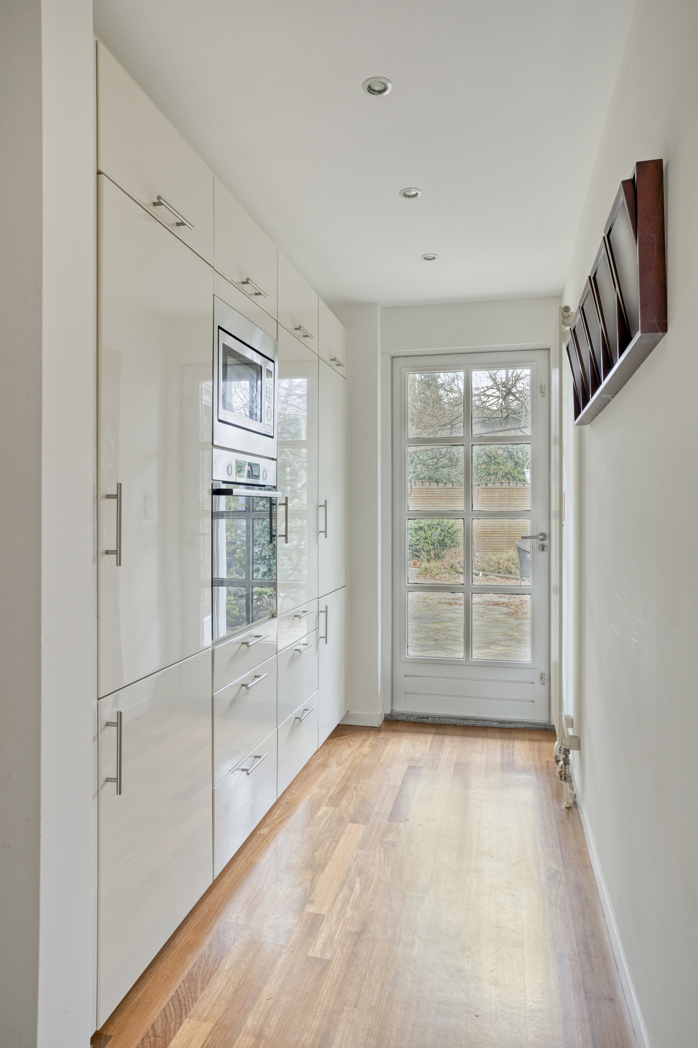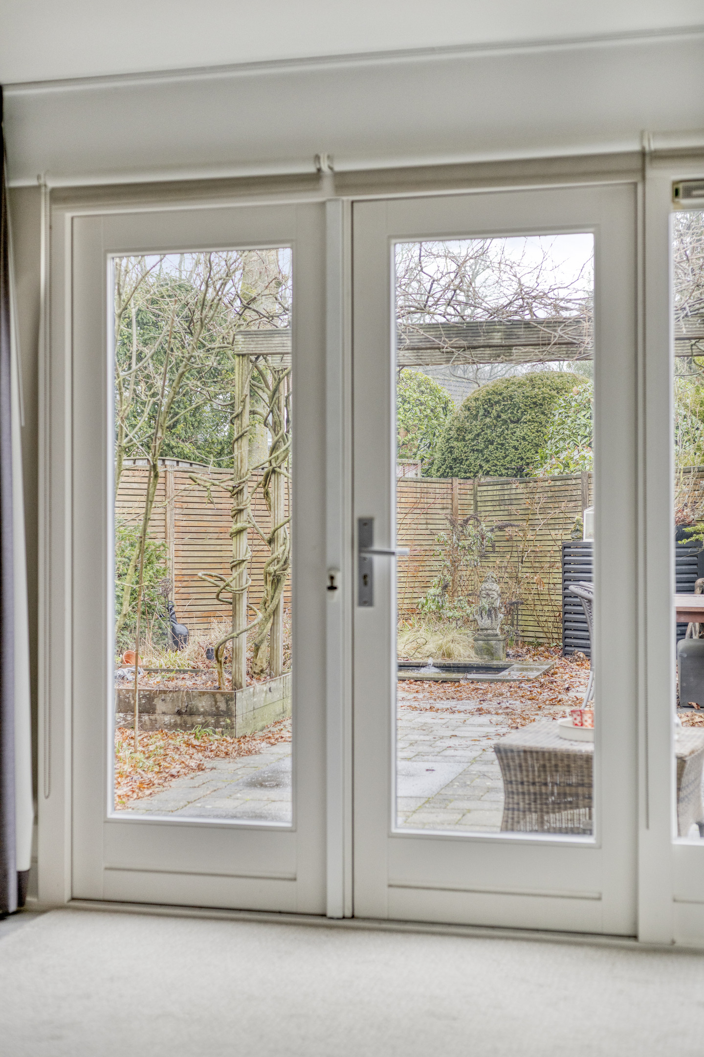 The backyard is southeast-facing, allowing you to enjoy the sun for a large part of the day. The garden also has a rear entrance, which is convenient for bicycles or garden maintenance.