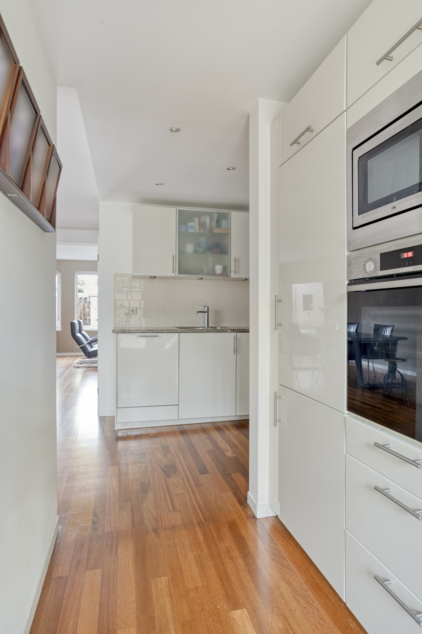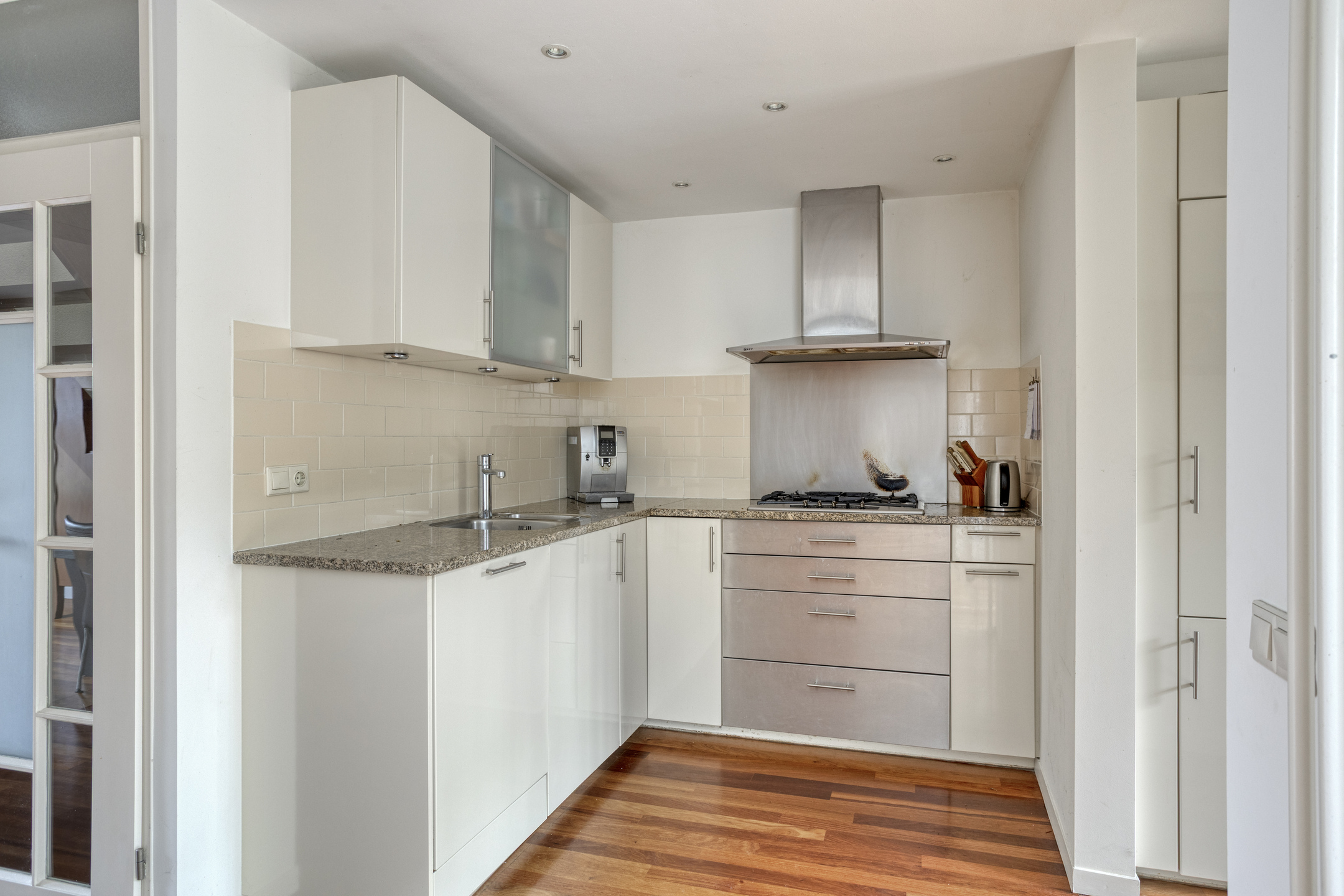 The kitchen is equipped with various built-in appliances, including a dishwasher, gas stove, refrigerator, freezer, and extractor hood.
