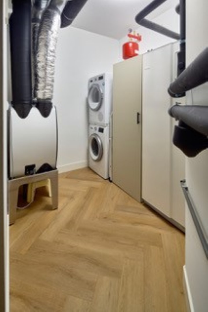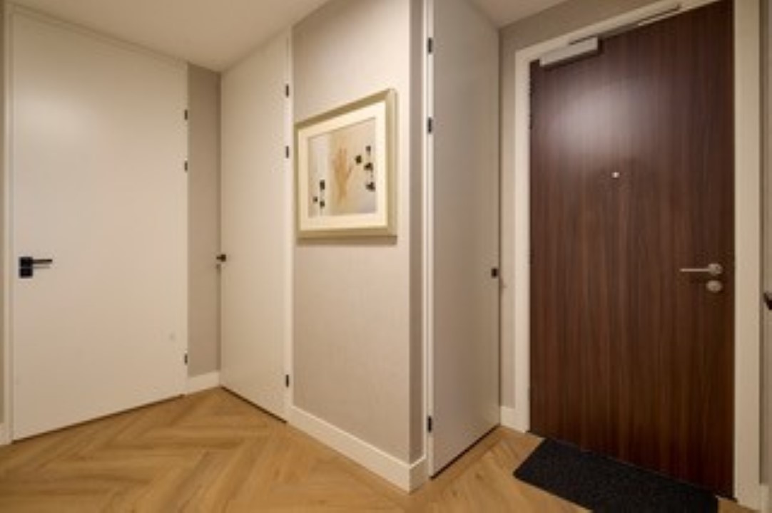 Bij binnenkomst valt direct de kwaliteit en afwerking op: een ruimtelijk gevoel door de slimme indeling, mooie lichtinval en stijlvolle materialen. De woonkamer met open keuken vormt het hart van de woning, een fijne plek om te ontspannen of gasten te ontvangen.