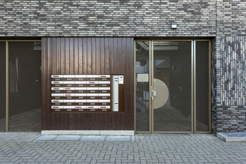Centrale entree met bellentableau, brievenbussen en toegang tot de trappen, lift en gezamenlijke binnenplaats.