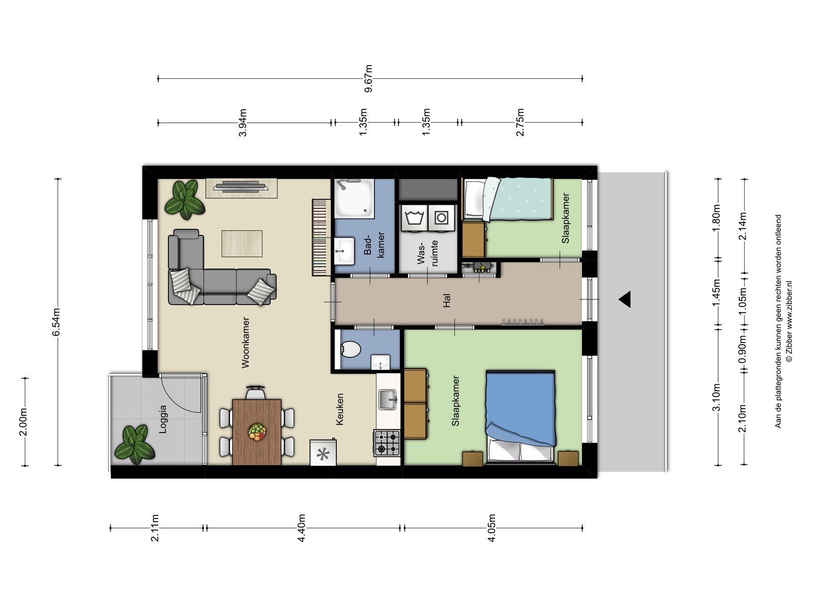 Via de hal bereikt u de eerste slaapkamer welke voldoende ruimte biedt aan een 2-persoonsbed en een grote kledingskast. Tweede slaapkamer.