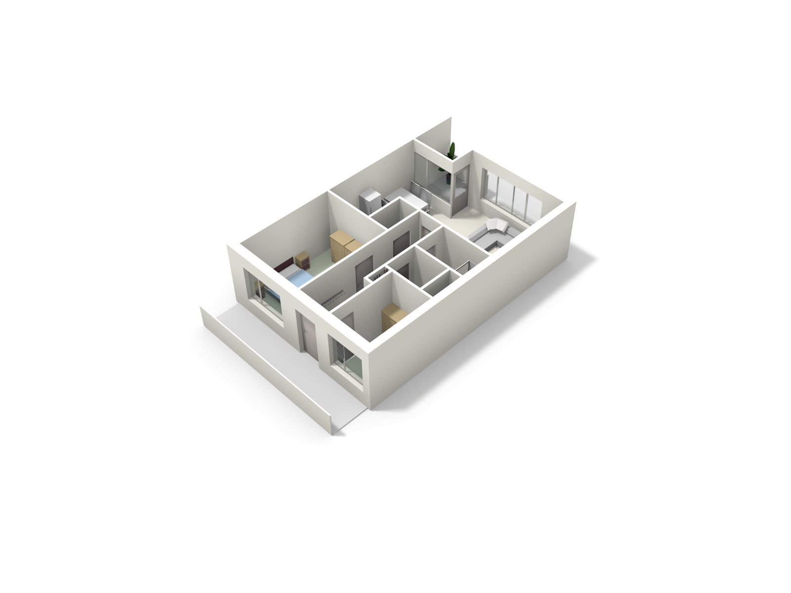 Toegang tot het appartement. Hal die toegang biedt tot de slaapkamer, badkamer en woonkamer.