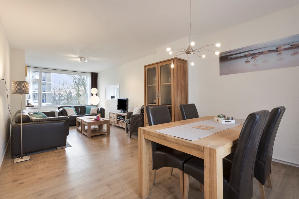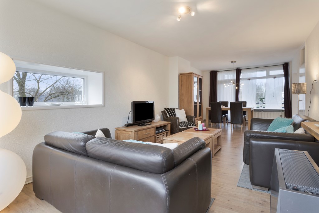 Via ontvangsthal toegang tot uiterst royale woonkamer. De woonkamer geniet veel lichtinval door de grote raampartijen. De woonkamer is voorzien van een extra kachel om de ruimte snel te kunnen verwarmen. Het appartement beschikt over twee balkons