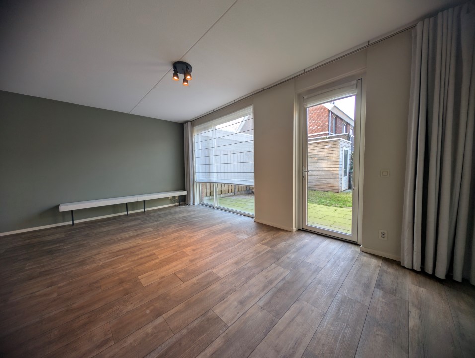 De lichte woonkamer staat in verbinding met de ruime achtertuin, een fijne plek om te ontspannen of buiten te eten. Parkeren is geen probleem: u heeft een vaste parkeerplaats direct voor de deur en extra parkeergelegenheid op eigen terrein.