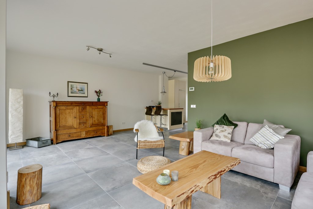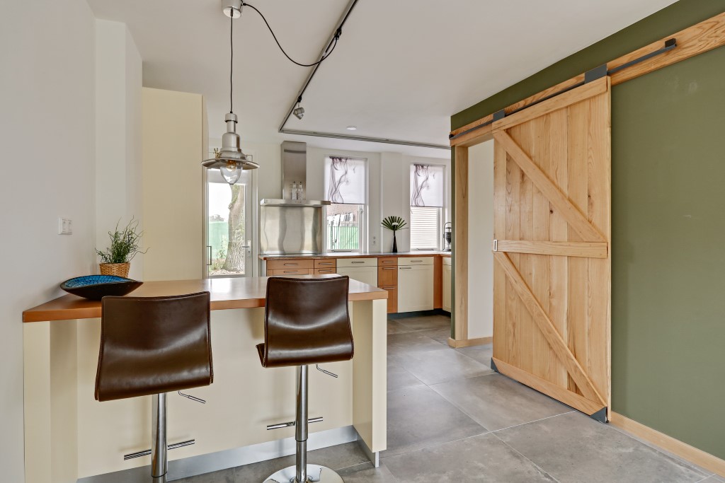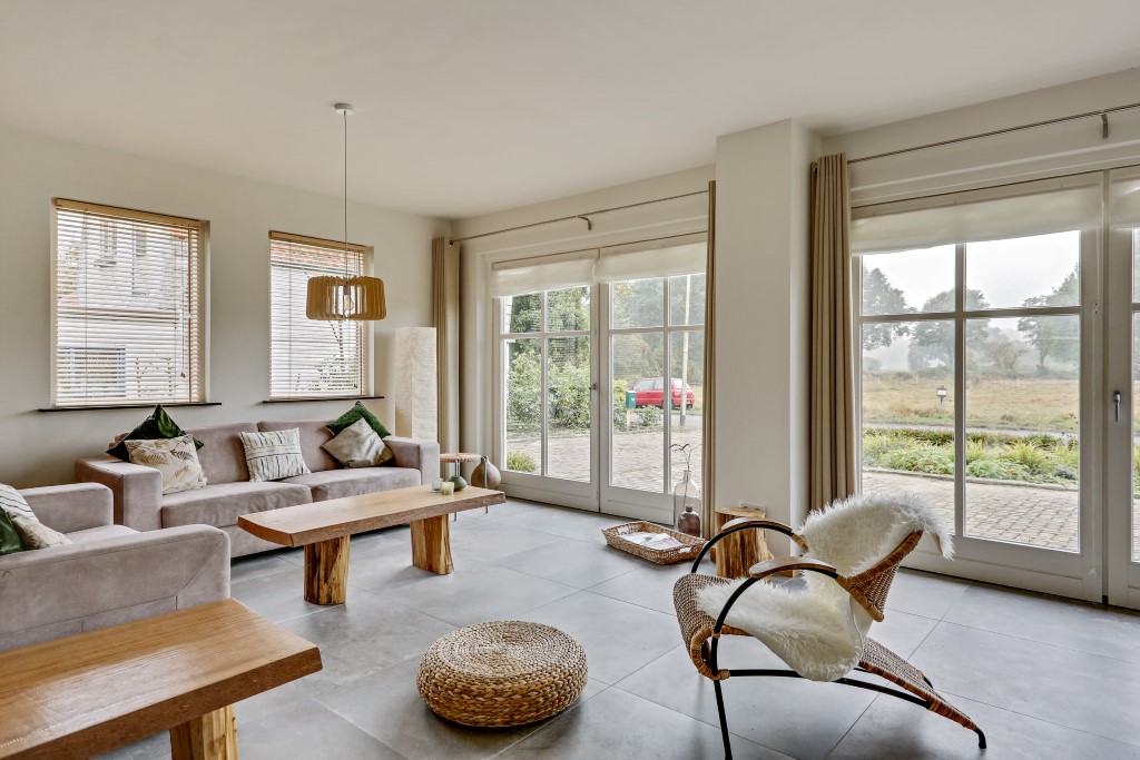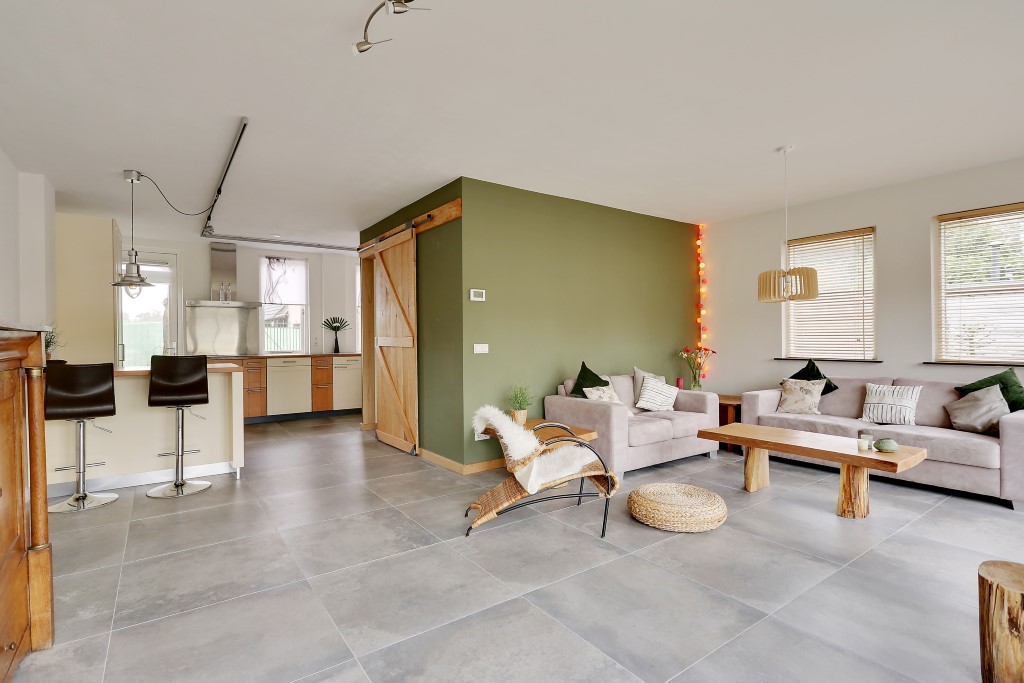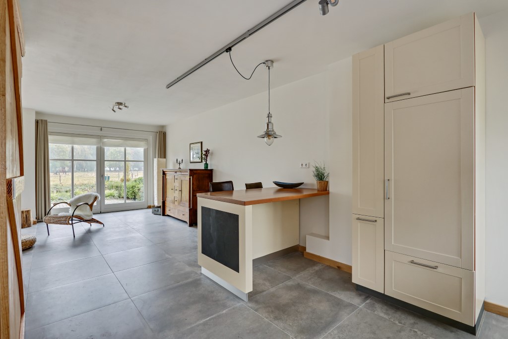 Deze gemeubileerde, in 1970 herbouwde Brabantse boerderij is begin 2016 opgesplitst, verbouwd en voorzien van al het moderne woongenot. De woonkamer is smaakvol ingericht waarbij er gebruik is gemaakt van natuurlijke materialen. Vanaf de bank heeft u uitzicht over de schitterende weilanden met paarden en kunt u elke avond genieten van een mooie zonsondergang. Een indrukwekkende eikenhouten staldeur scheidt de gang met het woongedeelte.