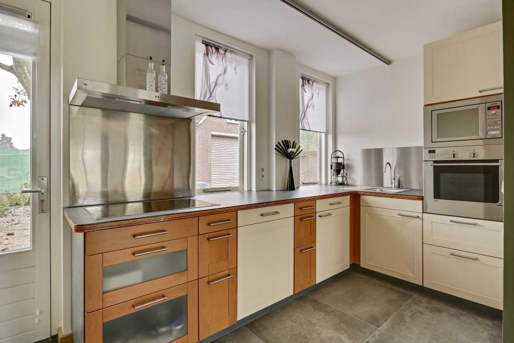 Het huis is voorzien van twee badkamers, twee toiletten, drie slaapkamers waarvan een ook is ingericht als werkkamer. Een ruime open keuken met volledige inventaris en voorzien van een oven, magnetron, koelkast, vriezer, vaatwasser, kookplaat en afzuigkap.