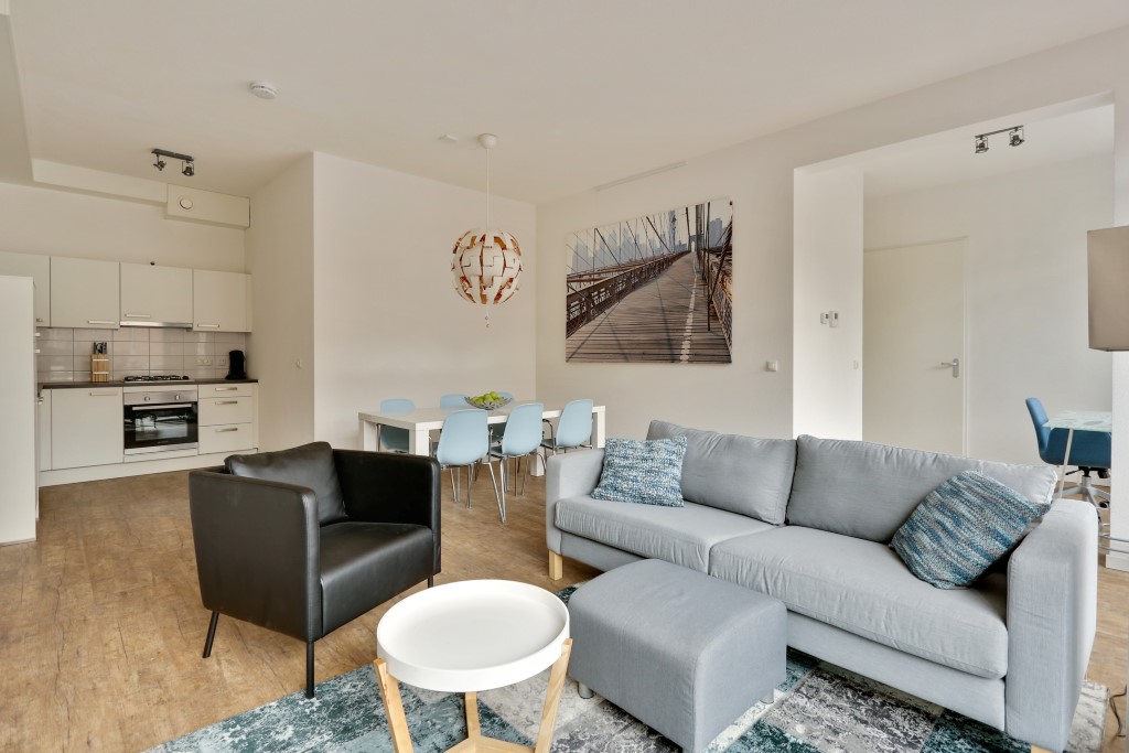 Woonkamer voorzien van mooie en onderhoudsvriendelijke hoge kwaliteit pvc vloer.