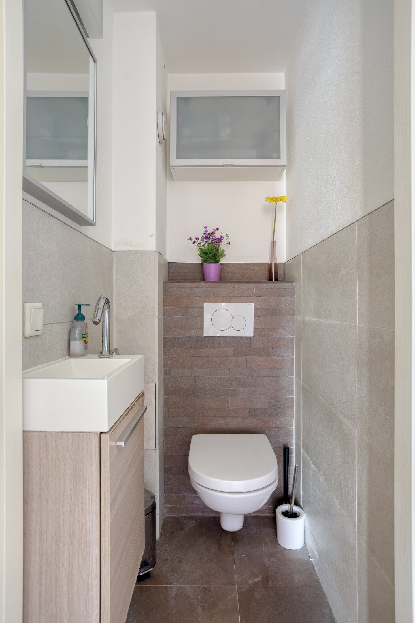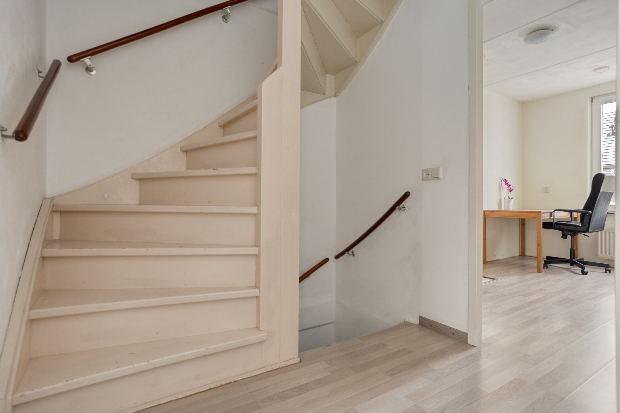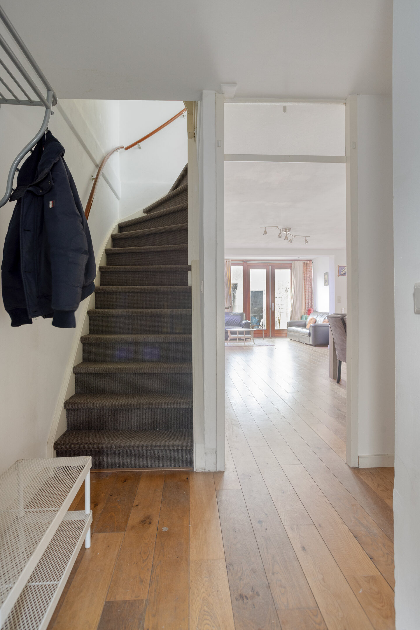 Via de entree kom je in de hal met toegang tot het toilet met fonteintje, de trap naar de eerste verdieping en de woonkamer.