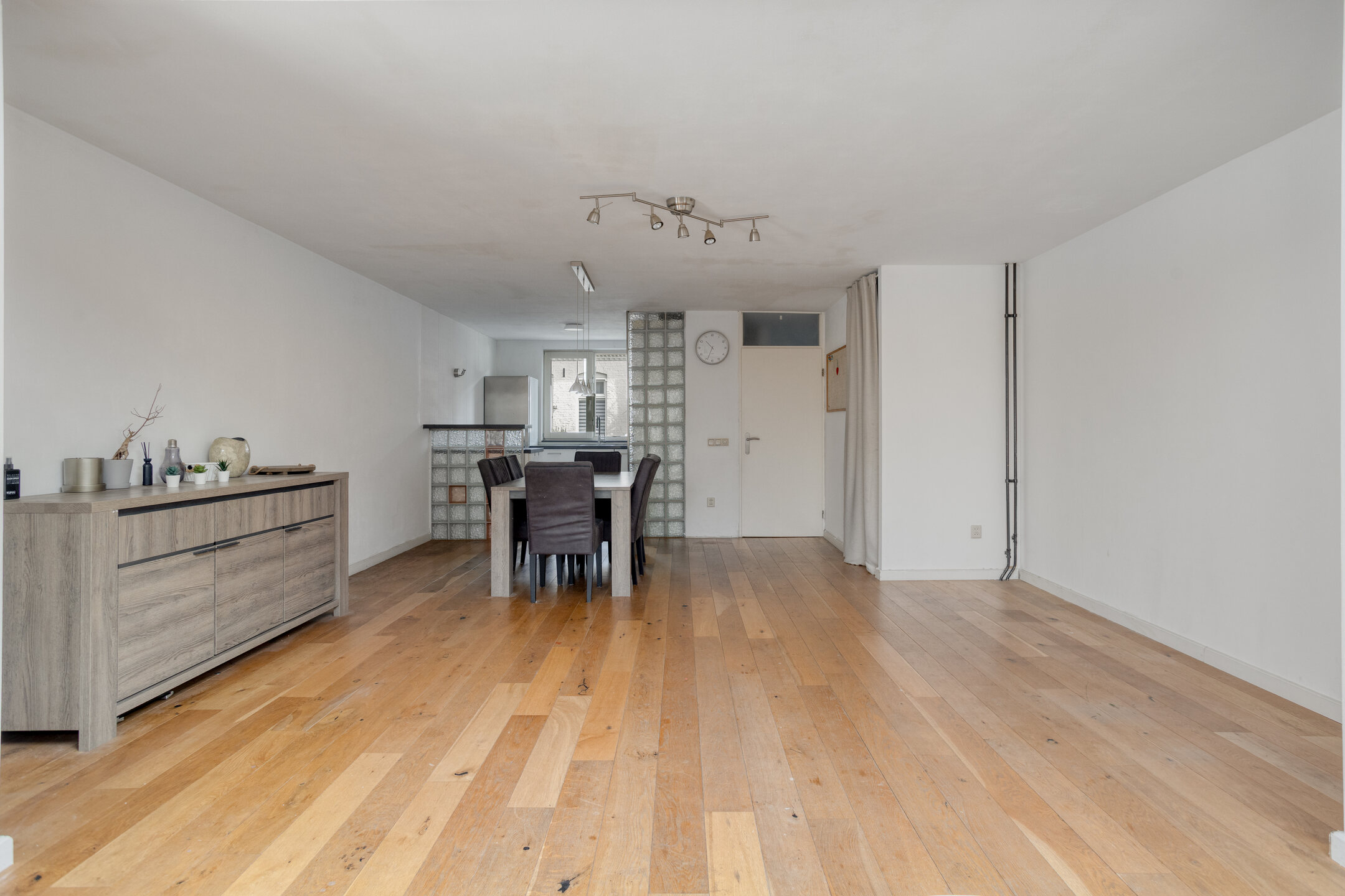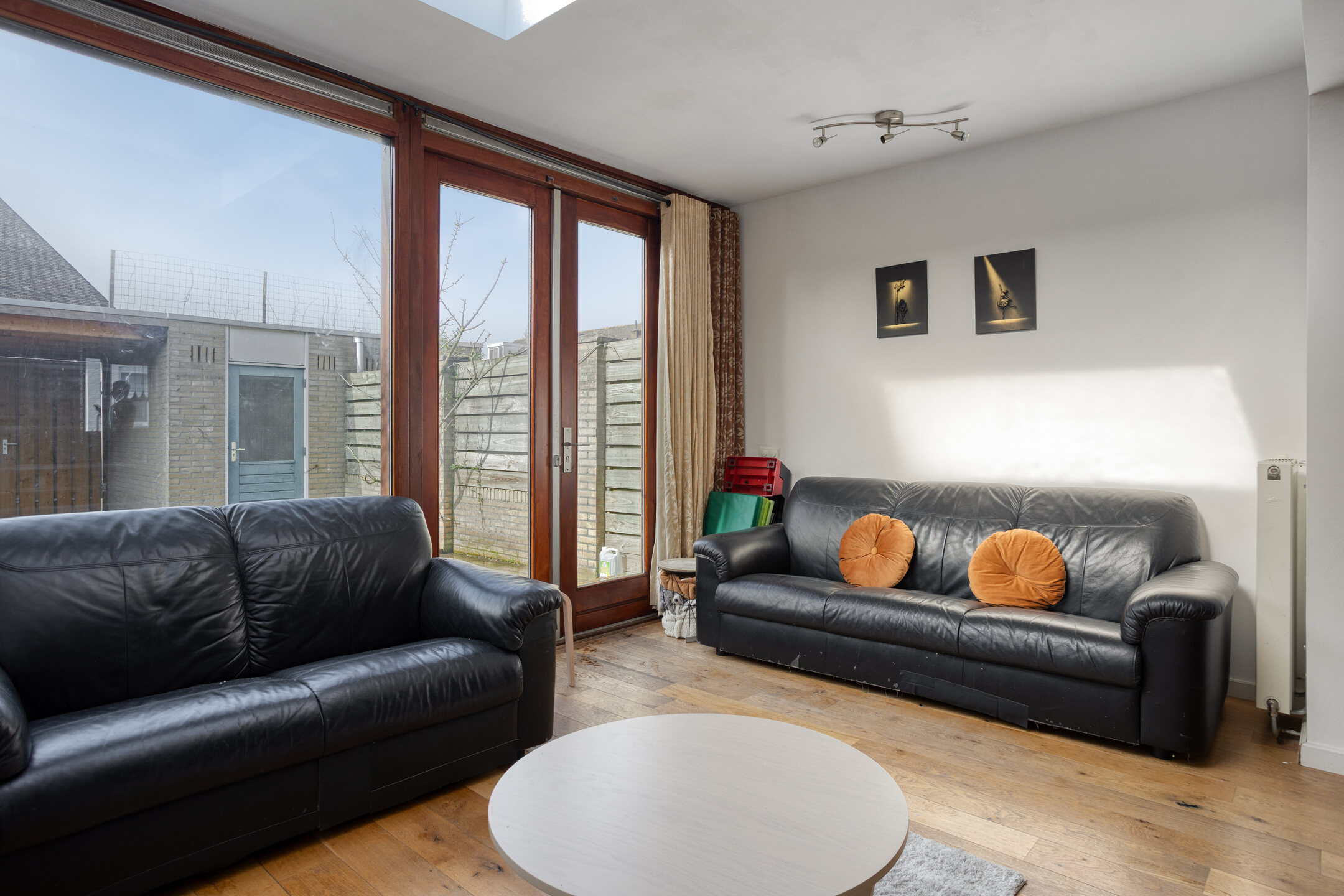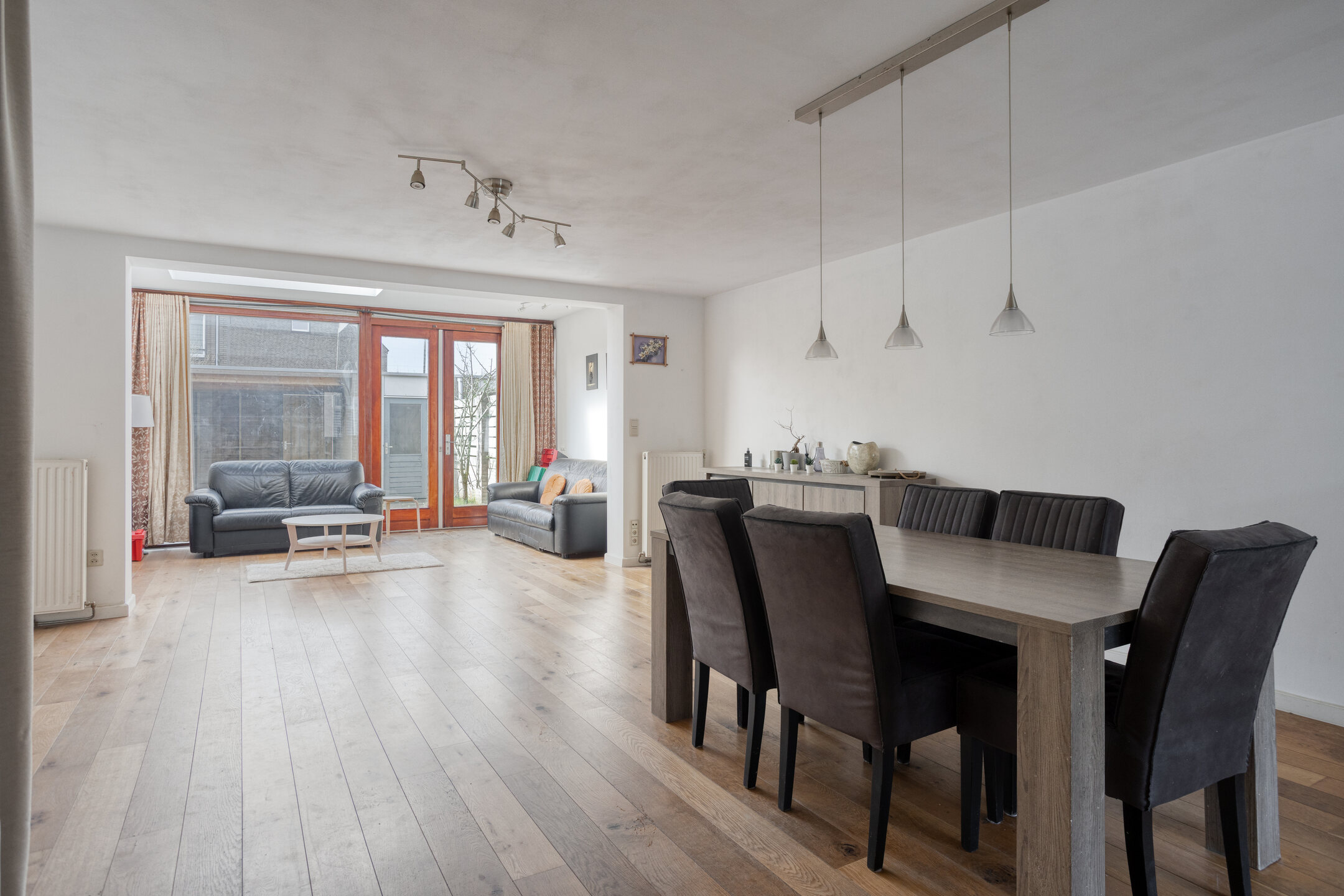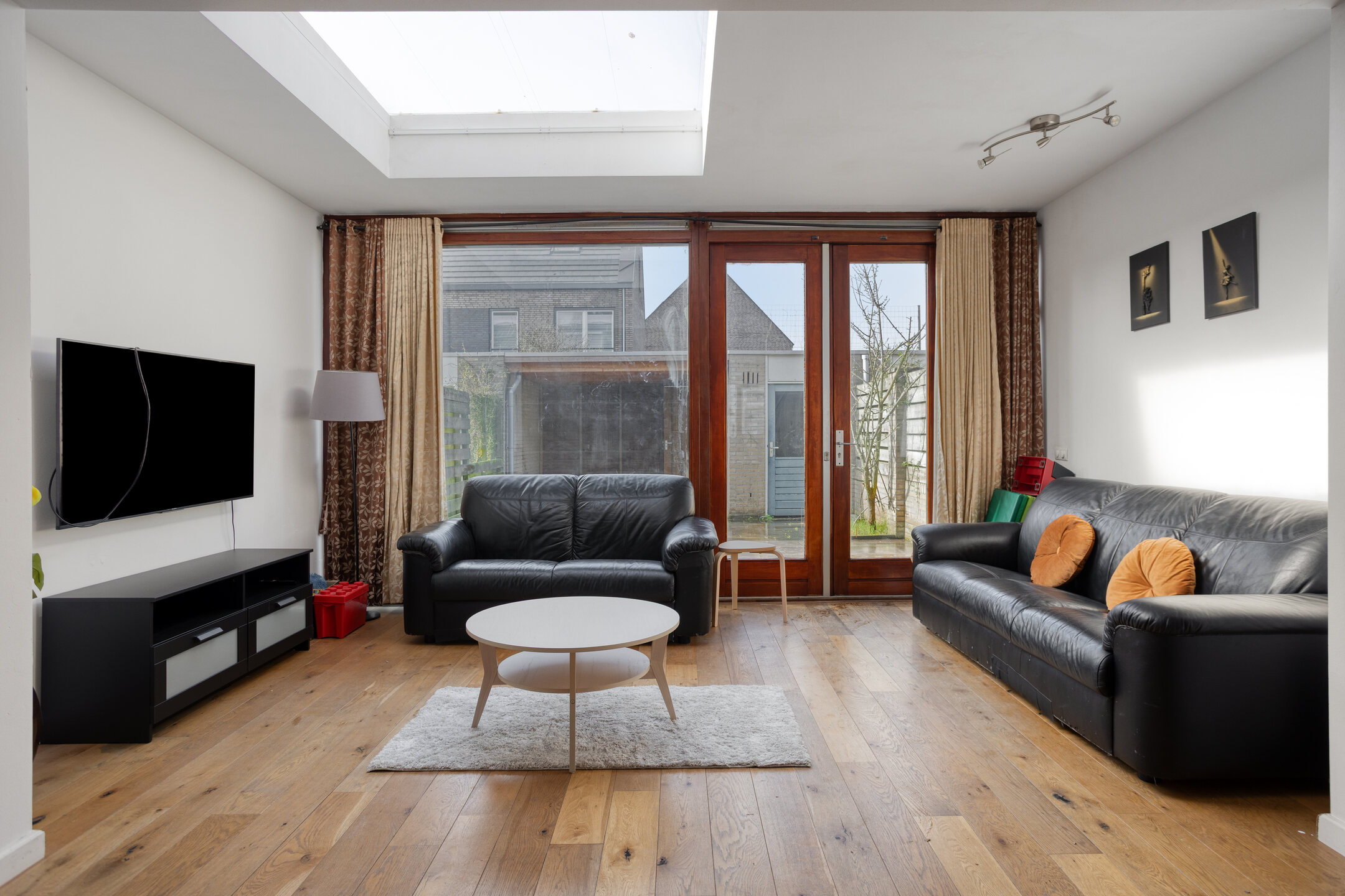 Lichte woonkamer met uitbouw en lichtstraat