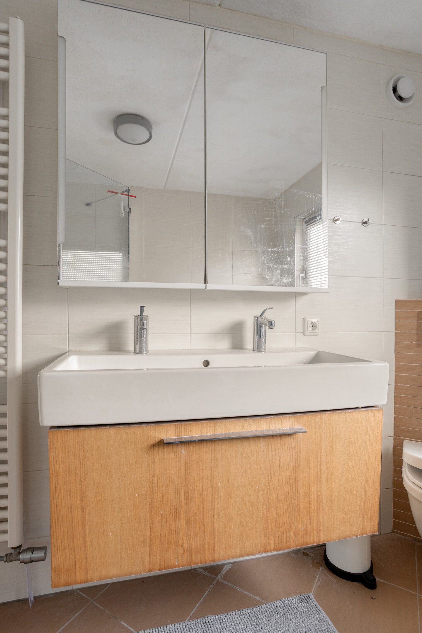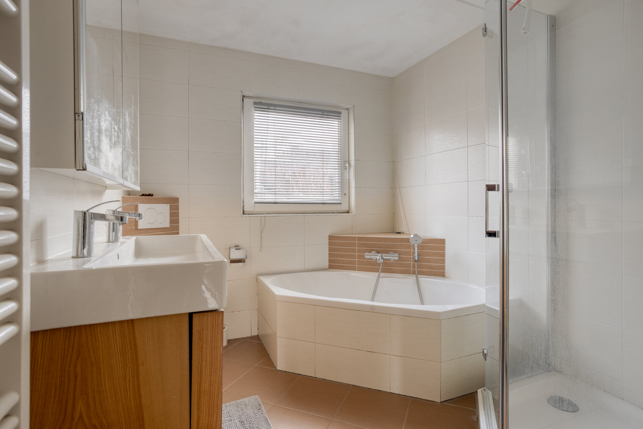 Daarnaast bevindt zich hier de tweede badkamer, voorzien van een douche en toilet.