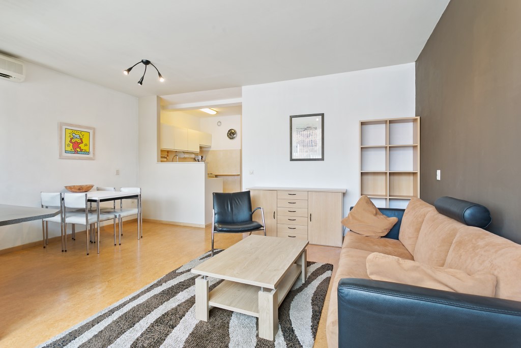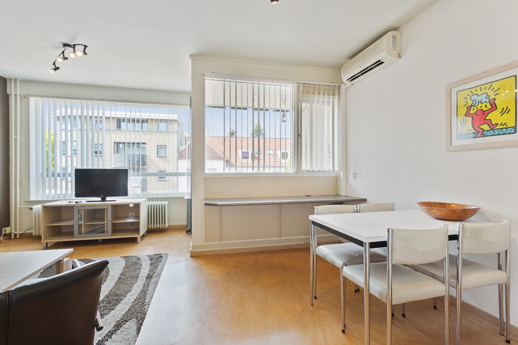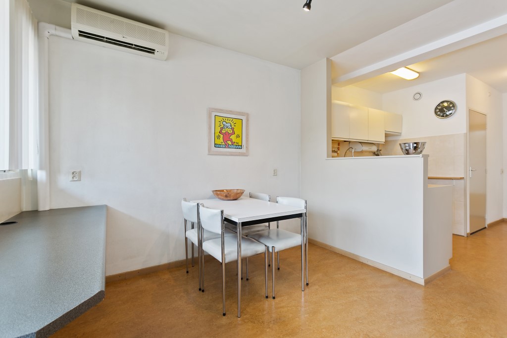 De ruime woonkamer is voorzien van een zeilvloer, strak afgewerkte wanden en airconditioning. Vanuit de woonkamer is het overdekte balkon bereikbaar, waar u kunt genieten van een leuk uitzicht op het Sint Trudoplein.<br