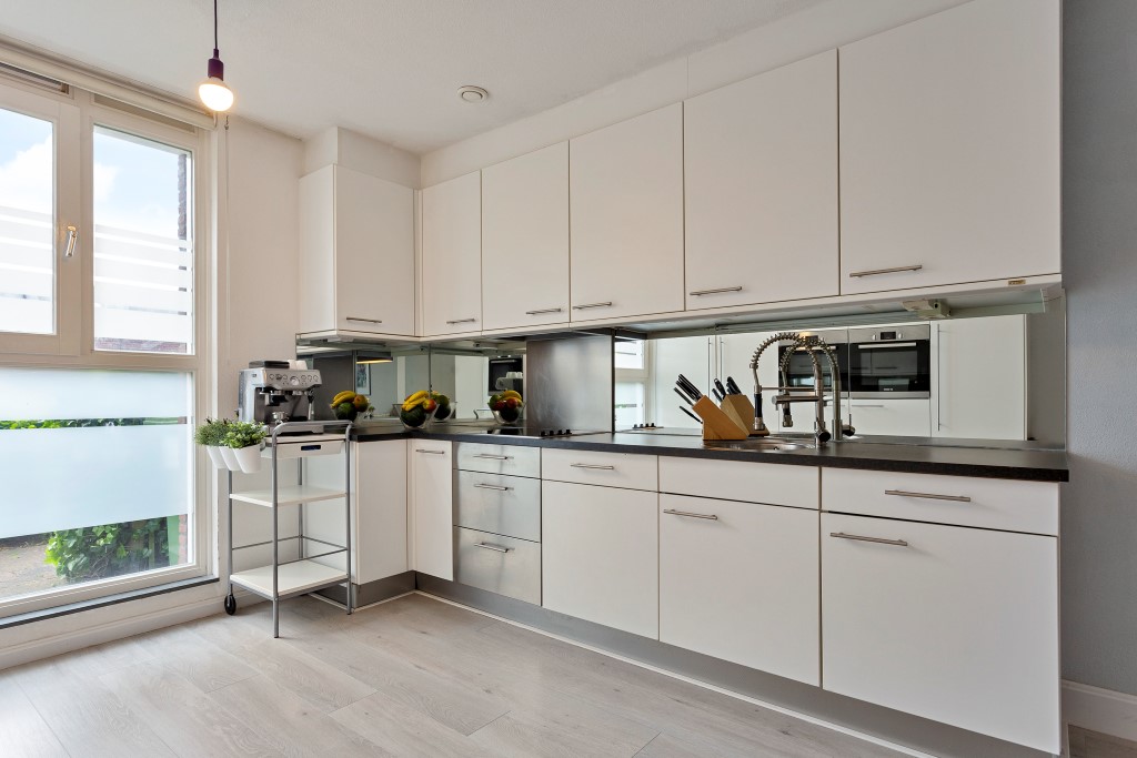 De keuken is compleet uitgevoerd met, koelkast/vriezer, combi ovens/magnetron/stoom, vaatwasser, spoelbak, keramische kookplaat, afzuigkap en meer dan voldoende kastruimte.